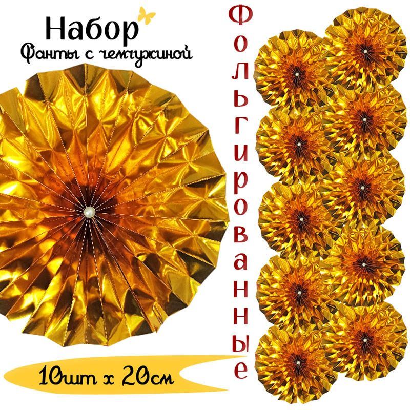 Фанты фольгированные с жемчужиной НАБОР 10шт х 20см, золото