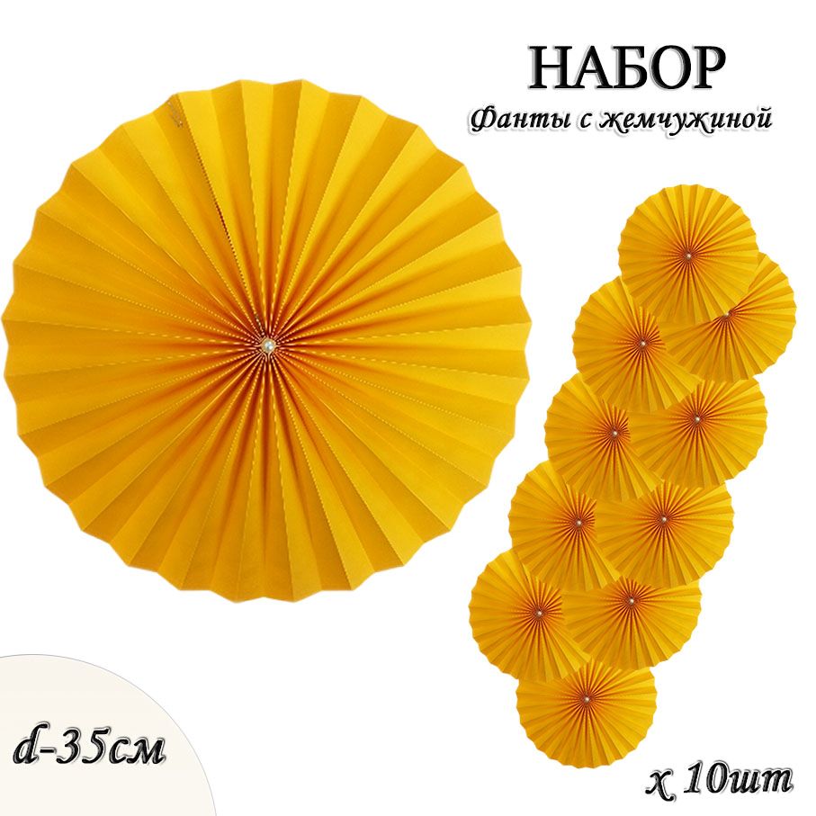 Фанты с жемчужиной НАБОР 10шт х 35см, ярко-желтый
