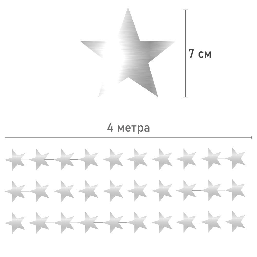 Гирлянда Звезды металлик 7 см 4 м серебро