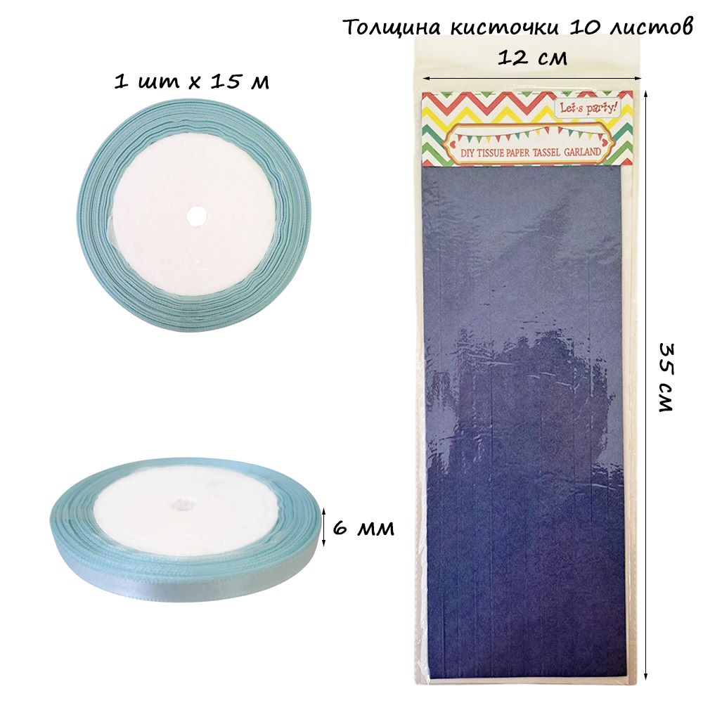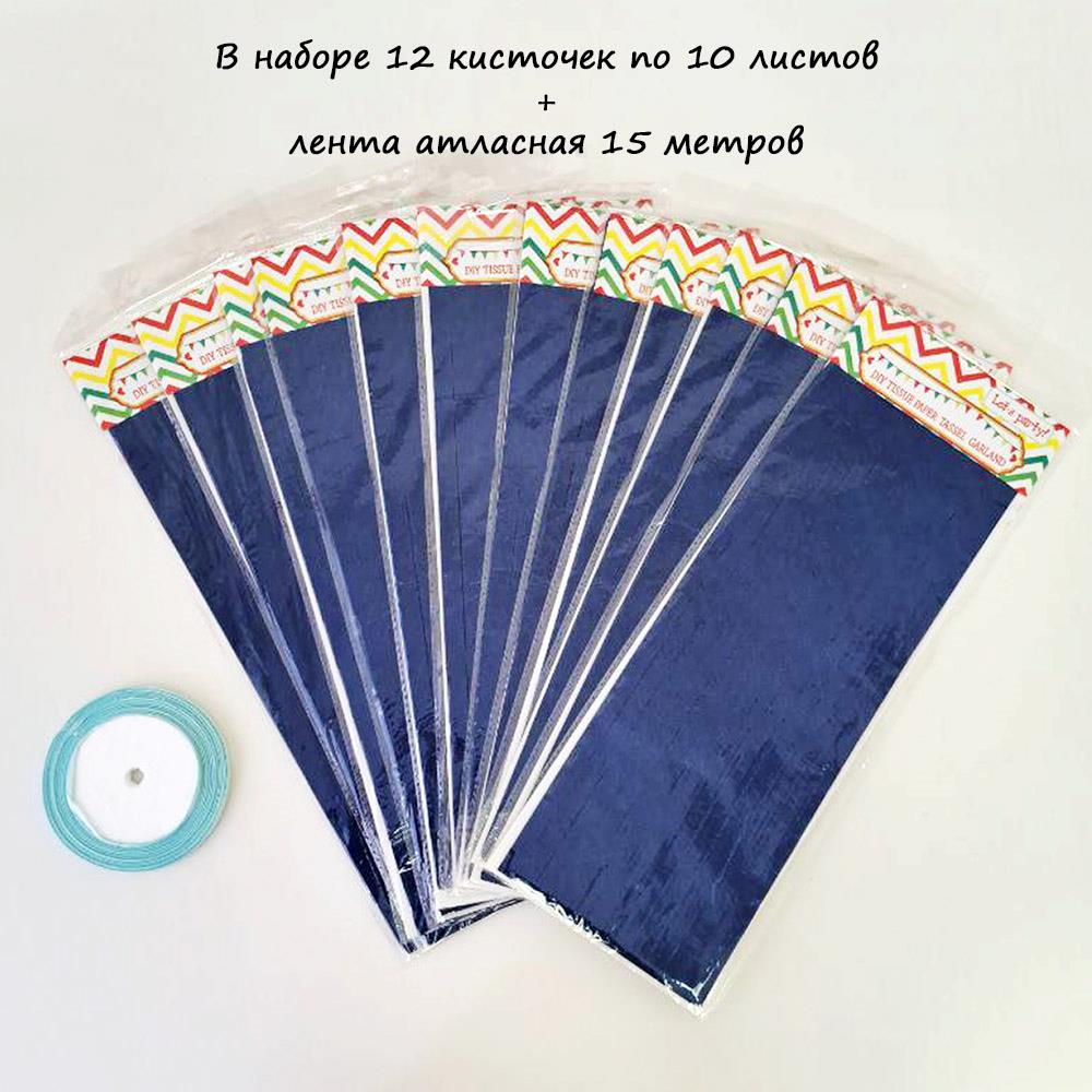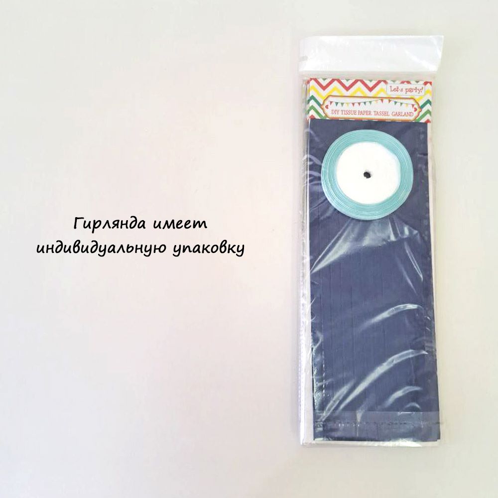 Гирлянда тассел 12 кисточек по 10 листов, темно-синий