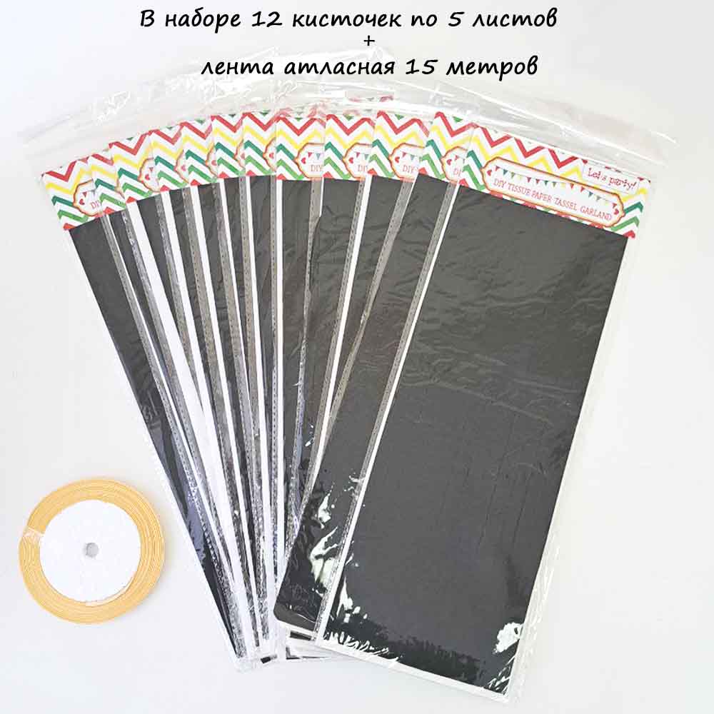 Гирлянда тассел 12 кисточек по 5 листов, черный