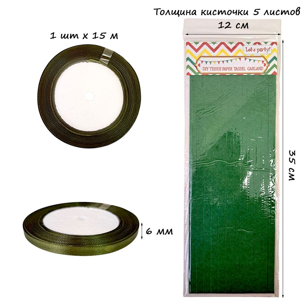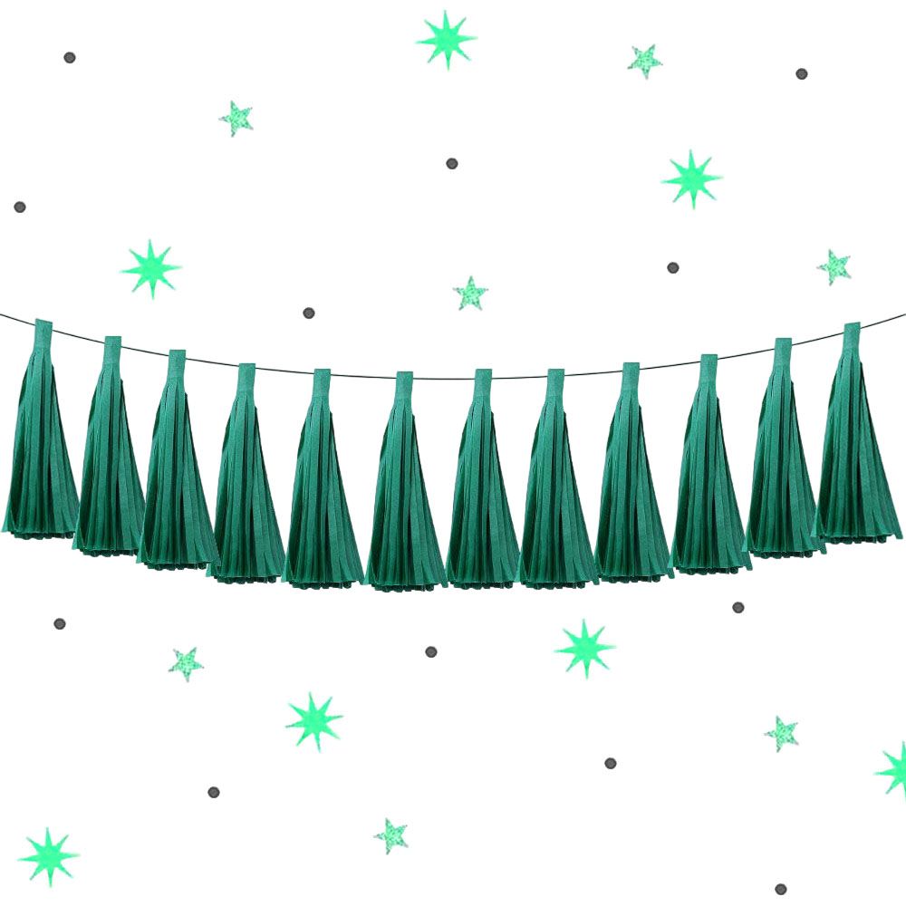 Гирлянда тассел 12 кисточек по 5 листов, зеленый