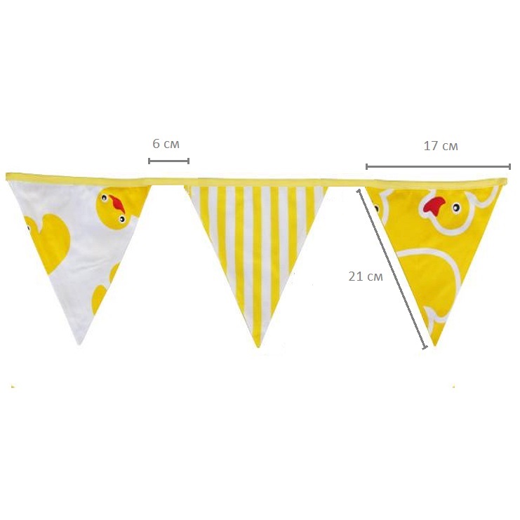 Гирлянда состоит из 12 флажков, расстояние между флажками 6 см, общая длина составляет 4 м.