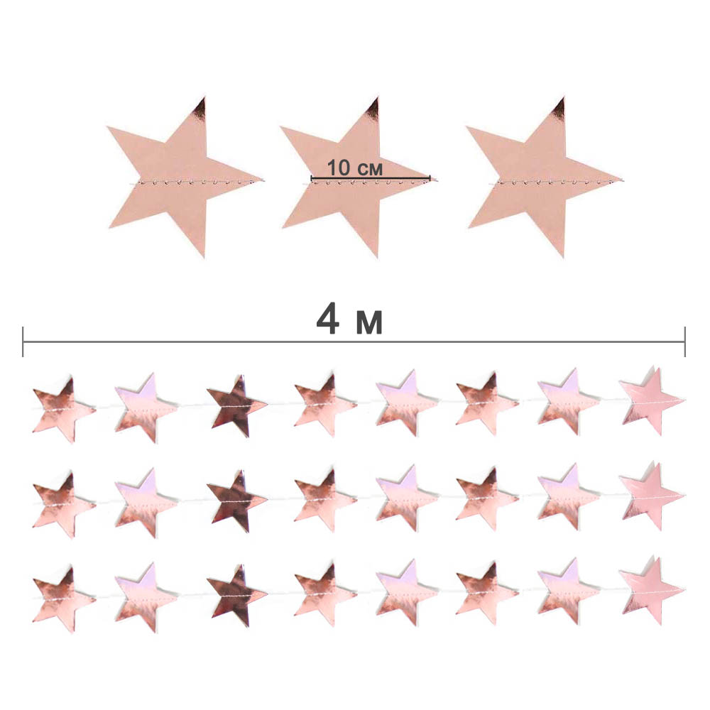 Гирлянда "Звезды" металлик 9 см х 4 м, розовое золото