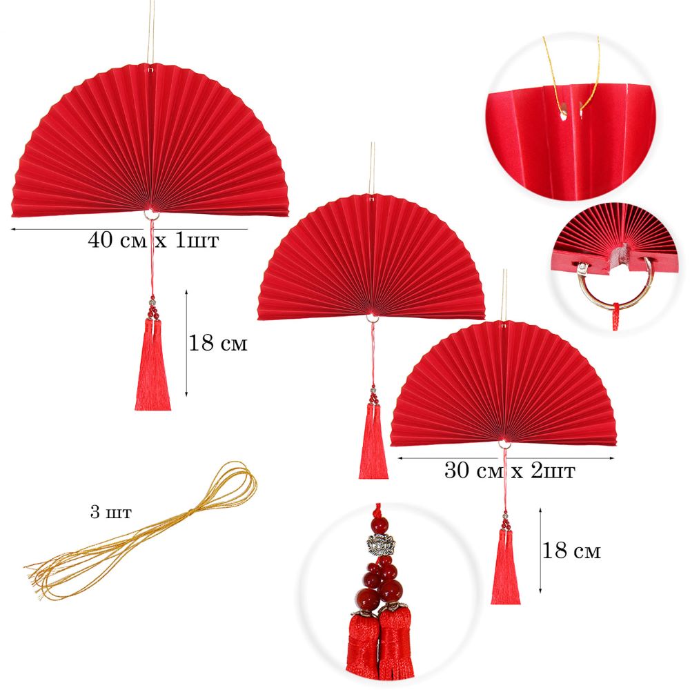 Комплект дополнен лентой для крепления и прочными шнурами для подвешивания вееров.