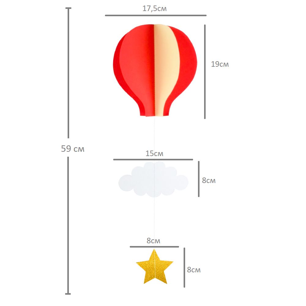 Подвеска Воздушный шар 59 см, айвори+красный