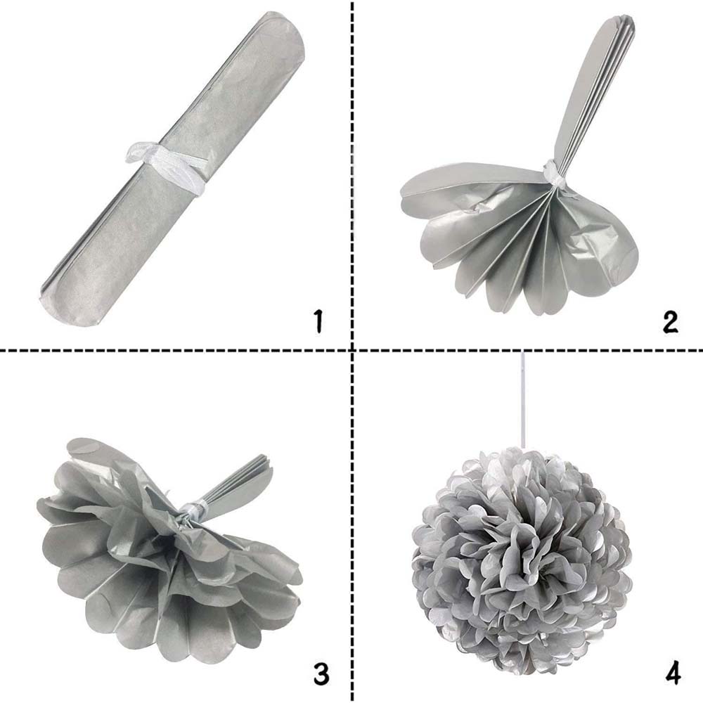 Помпон из бумаги 20 см серебро