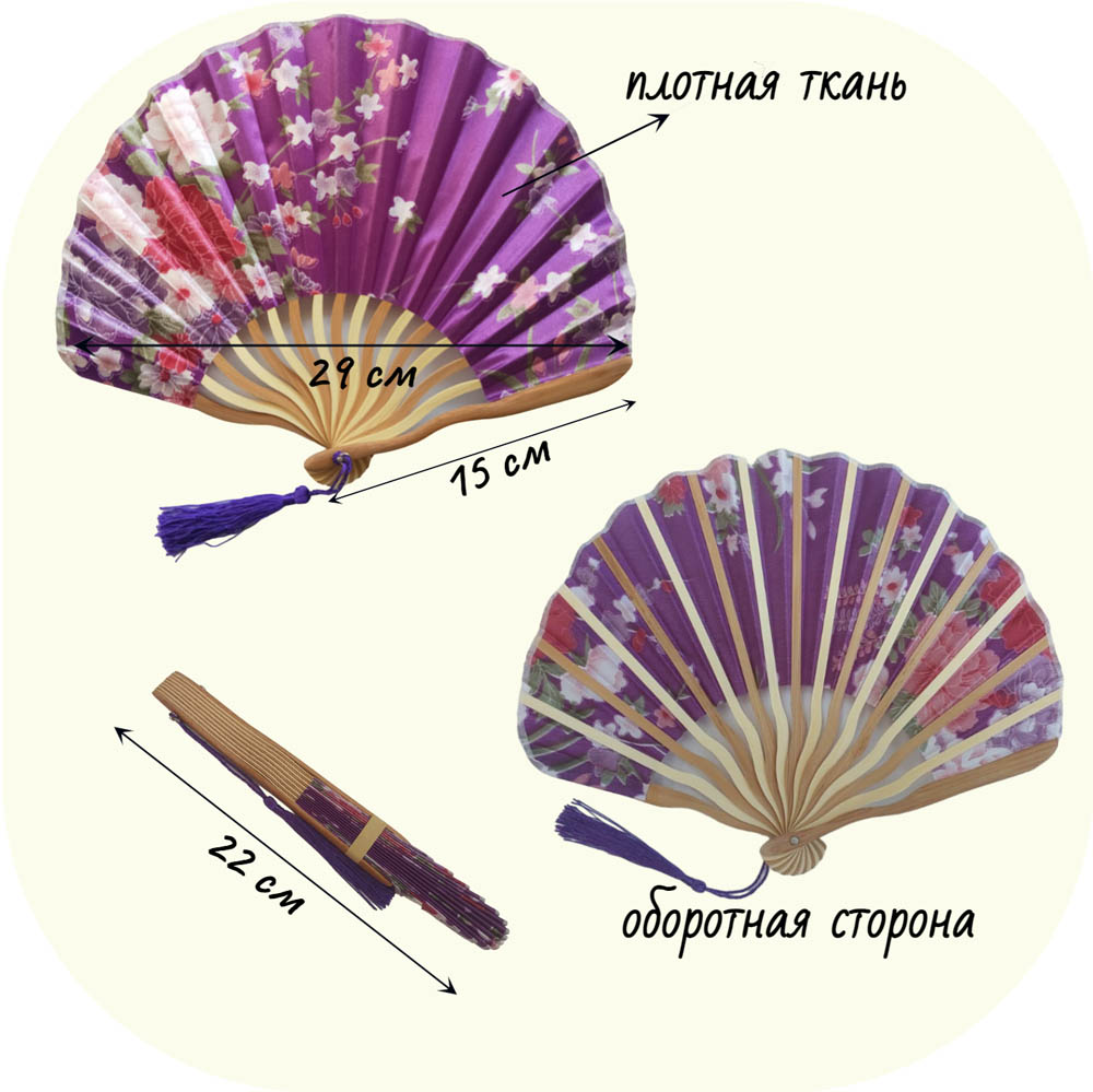 Веера тканевые с цветочным узором круглые 29х15см