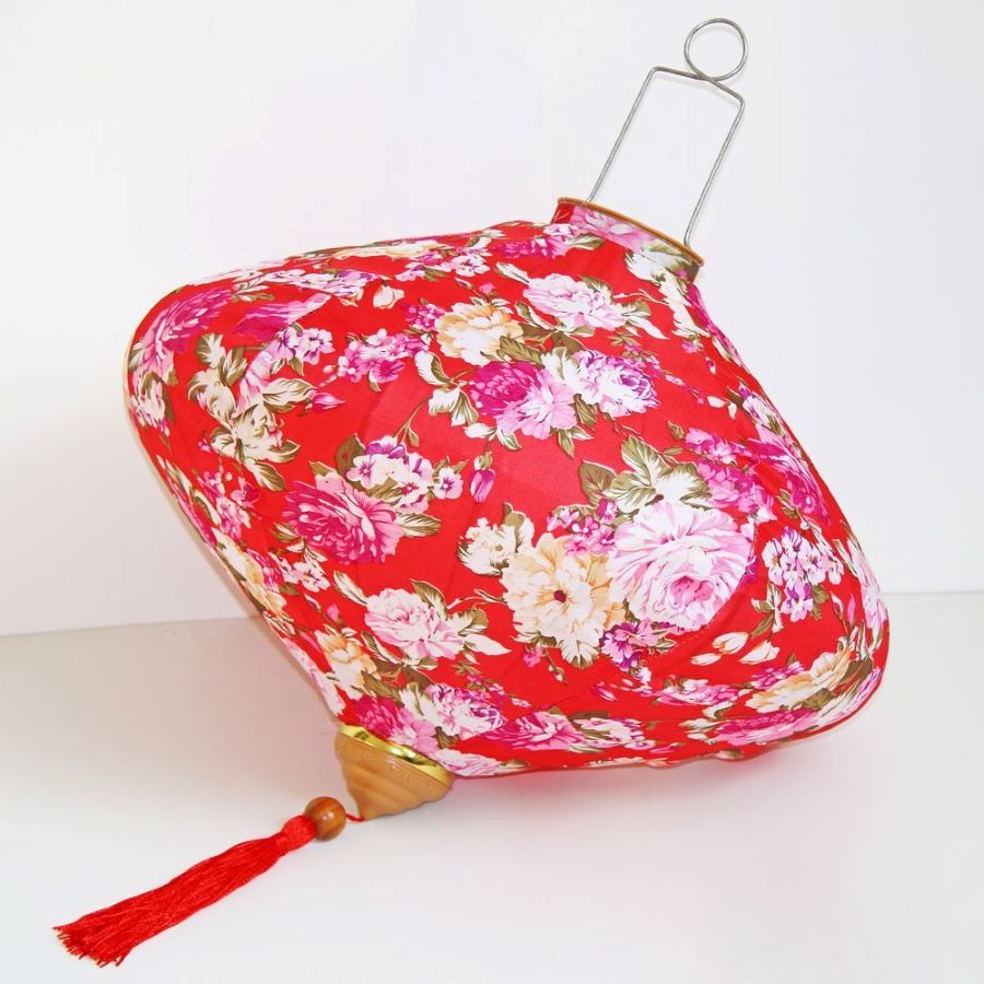 Это традиционные подвесные фонарики ручной работы, изготовленные из шелкового материала с элегантным цветочным узором, которые делают его изысканным и красивым.