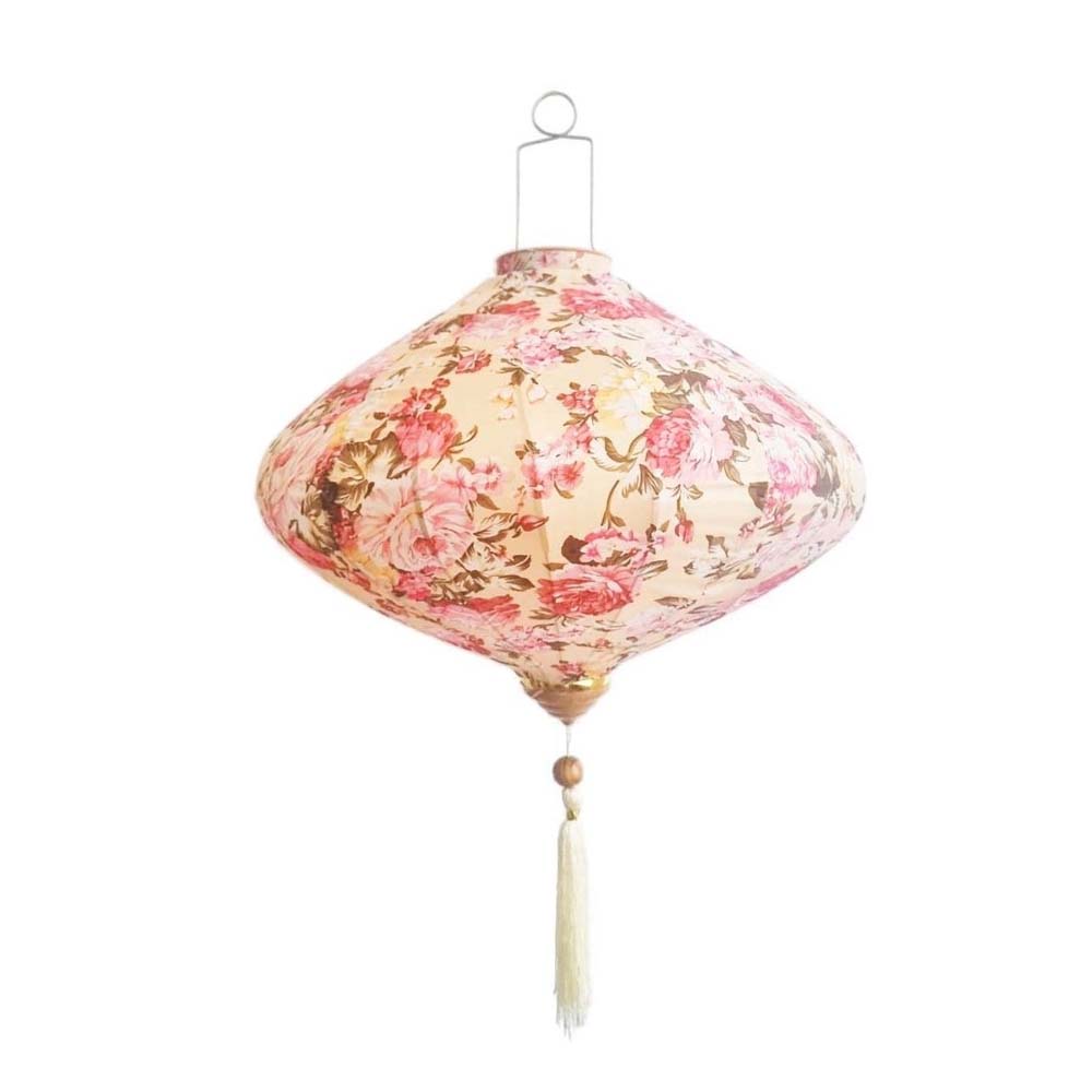 Это традиционные подвесные фонарики ручной работы, изготовленные из шелкового материала с элегантным цветочным узором, которые делают его изысканным и красивым.